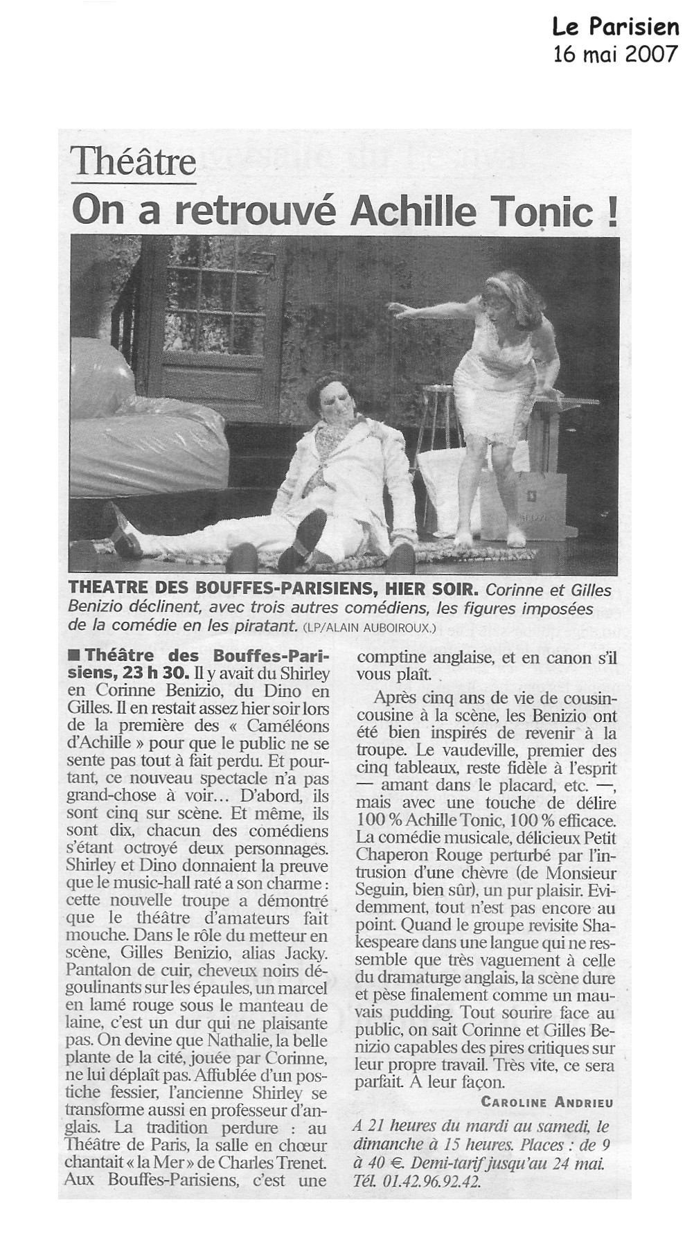 première représentation du nouveau spectacle « Les Caméléons d’Achille » à Paris jusqu'au 30 juin 2007